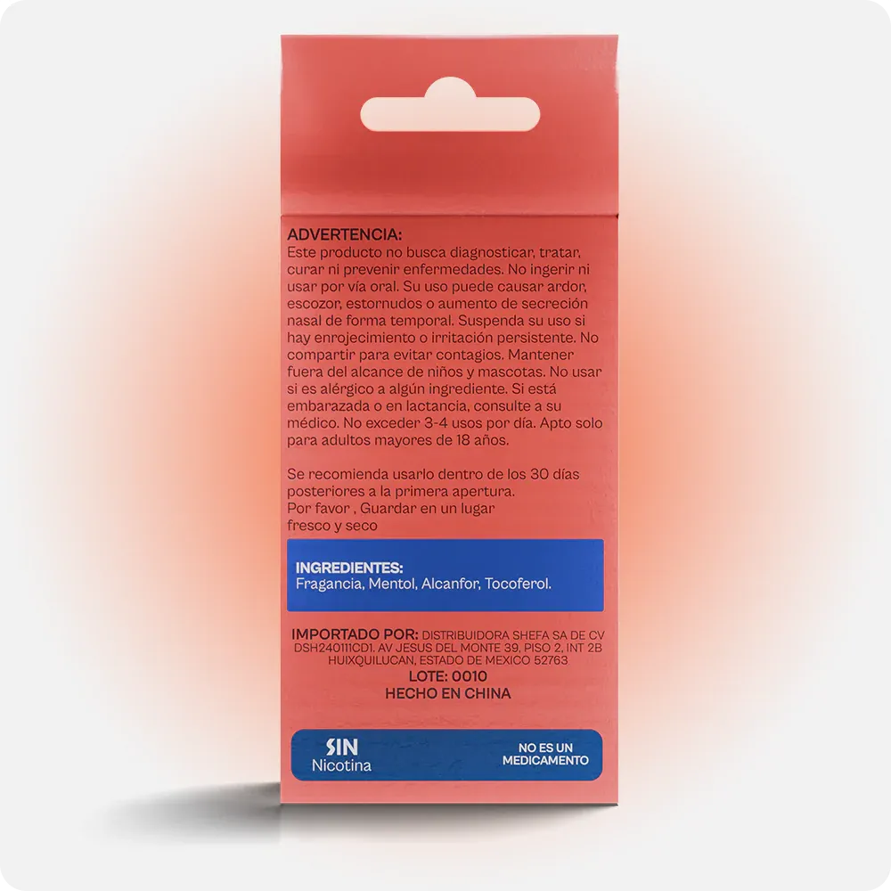 El inhalador nasal Energy Rush de SPOWAA está diseñado para activar tus sentidos y elevar tu energía de forma natural. Su aroma intenso y estimulante es ideal para momentos de baja concentración o cansancio. Gracias a su mezcla de aceites esenciales y su formato compacto, es el aliado perfecto para mantenerte alerta y enfocado sin recurrir a estimulantes artificiales.